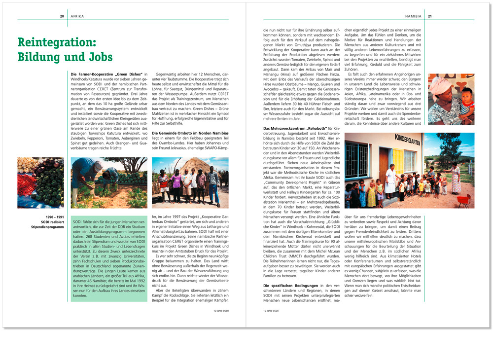 Wechsel auf die Zukunft · 10 Jahre SODI | Solidaritätsdienst-international e.V. | Format: 210 × 280 mm | Umfang: 36 Seiten | Gesamtgestaltung