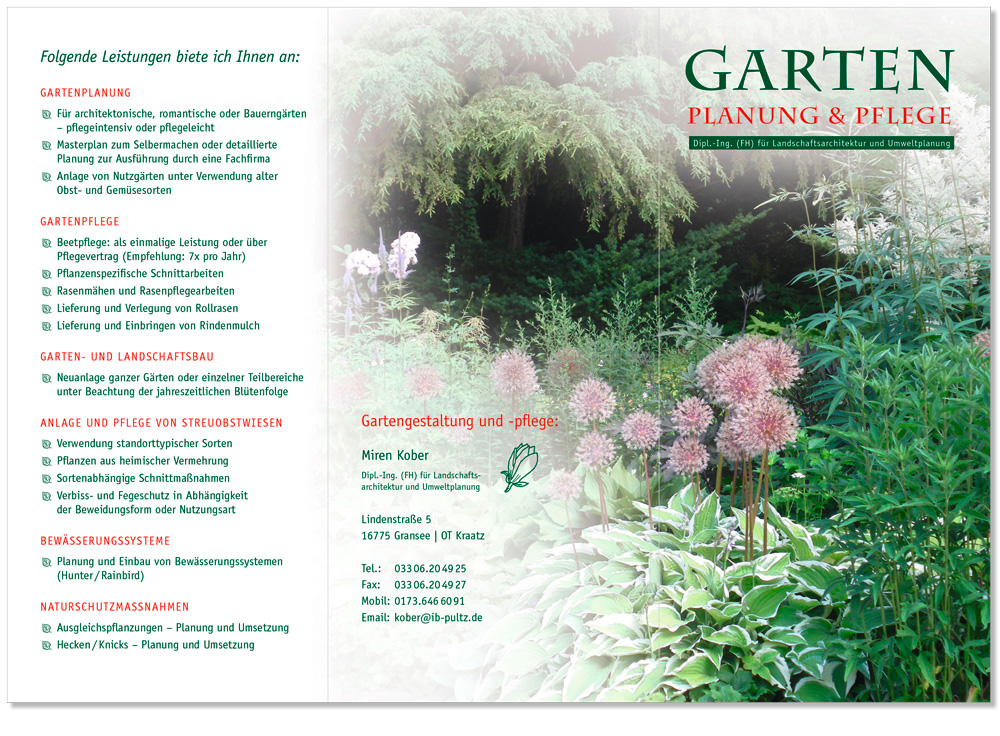 Garten · Planung & Pflege | Flyer (DIN lang, 6 Seiten) und Visitenkarte | Gesamtgestaltung