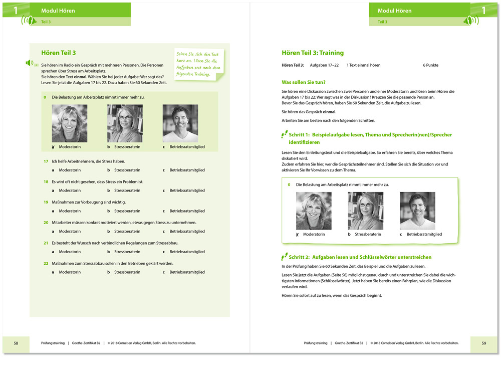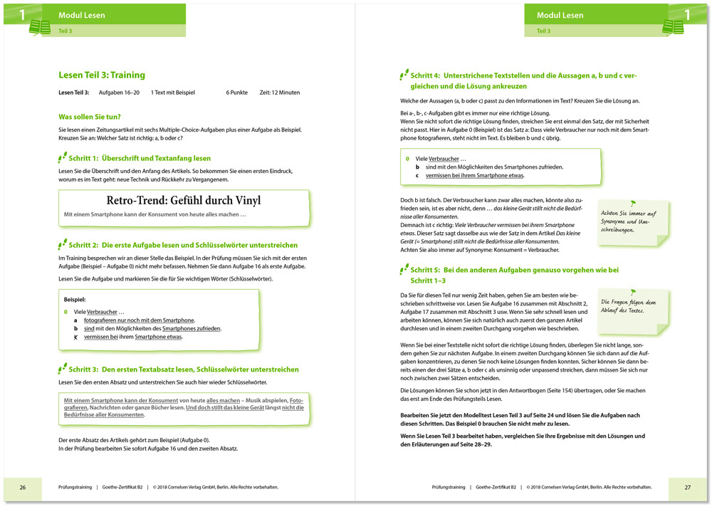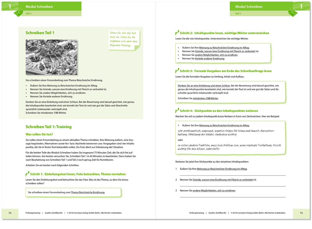 Deutsch als Fremdsprache · Prüfungstraining Goethe- Zertifikat B2 (Arbeitsheft) | Cornelsen Verlag | Format: 210 × 297 mm | Umfang: 160 Seiten | Layout und technische Umsetzung